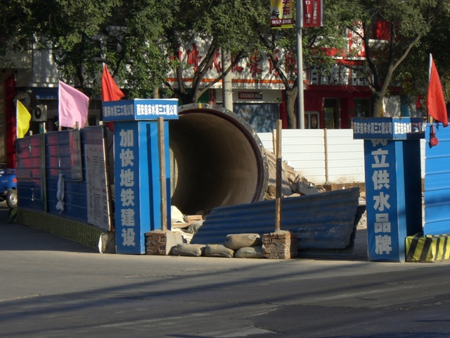 そんな西安に、夏ごろから「地下鉄建設」という一大プロジェクトが進められています。 西安中心部の朝晩のラッシュ、西安駅周辺の渋滞はかなり深刻。 南北一直線に地下鉄を走らせることで、渋滞緩和を考えているようです。 完成は2011年・・・だそうですが、絶対に予定通りにはいかないんでしょうねぇ。